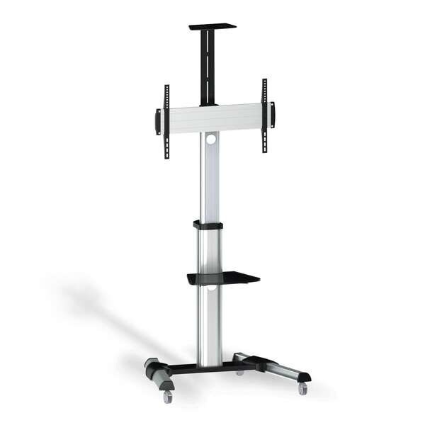 Aisens Eco Supporto da pavimento con ruote – Vassoio per DVD e supporto per telecamera (TV 37″-70″) – Colore Argento