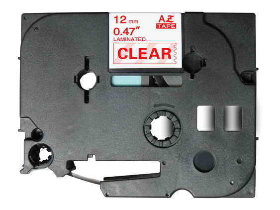 Brother TZe132 Nastro per etichette laminate compatibile – Testo rosso su fondo trasparente – Larghezza 12 mm x 8 metri
