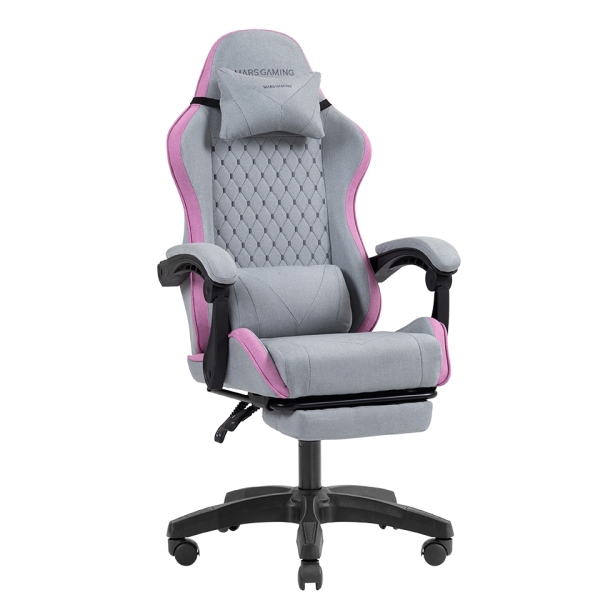 Mars Gaming MGC-X FABRIC Sedia da gioco ergonomica – Poggiapiedi estensibile – Cuscini lombari e cervicali – 660x540x1250 mm – Tessuto traspirante – Colore grigio e rosa