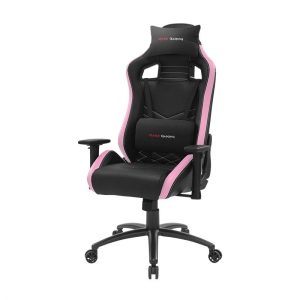 Mars Gaming MGC-X FABRIC Sedia da gioco ergonomica – Poggiapiedi estensibile – Cuscini lombari e cervicali – 660x540x1250mm – Tessuto traspirante – Colore nero e rosa